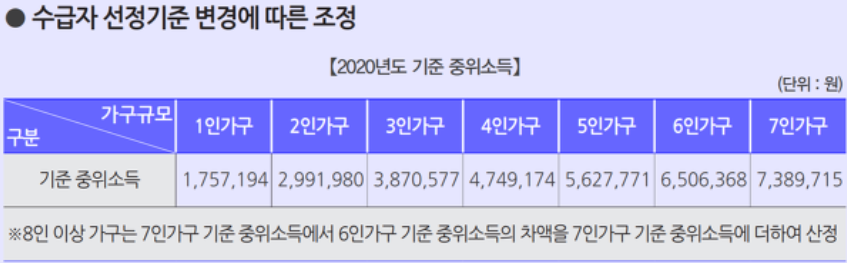 2020년 기초생활수급자 자격요건