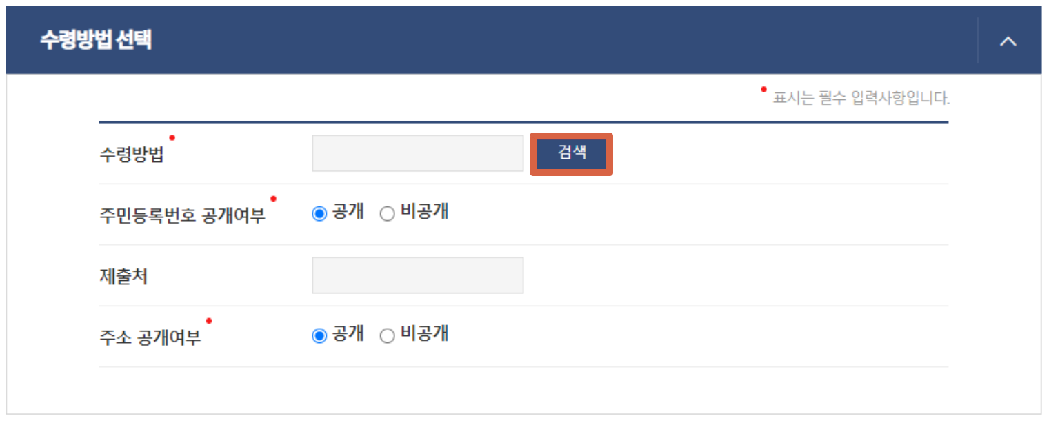 6. 수령방법을 검색하면 온라인발급할지 열람만 할지를 선택할 수 있습니다. 참고로 열람만 하는건 컴퓨터 화면상으로만 나오는거라서 법적인 효력이 없음을 인지해야합니다. 다만 오늘은 설명이라 일부러 열람으로 해보겠습니다. 본인이 어디다가 서류를 내야하는 상황이라면 무조건 본인출력을 선택하길 바랍니다.