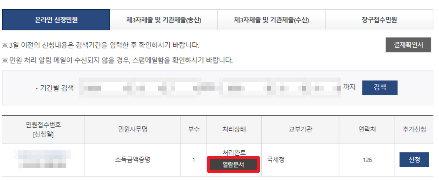 2. 연소득 증명서를 받을때는 수수료가 전혀 들지 않는다는 사실을 기억해두세요. 방문도 가능하고 민원우편도 되고 무인발급기에서 서류를 뗄 수 있지만 우리의 시간은 소중하니 온라인으로 해봅니다.