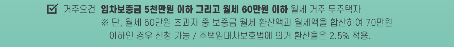3. 거주 : 보증금 5천만원 이하 및 월 60만원 이하 거주하는 무주택자