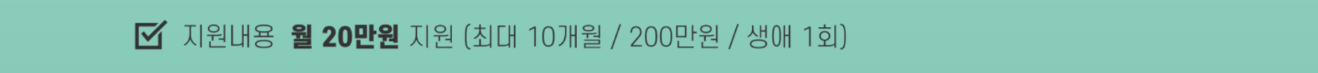 월 20만원을 10개월까지 지원합니다. 열달동안 다 지원을 받게되면 200만원이란 큰 금액을 얻게 되는것입니다. 이건 지역화폐로 주는것도 아니고 계좌로 줍니다. 생애 딱 1번만 받을 수 있다는 점이 아쉽긴 합니다.
