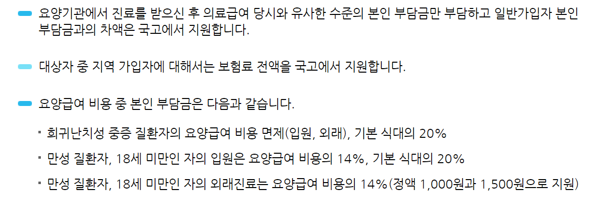 치과 치료나 틀니 임플란트 추나요법이나 입원해서 밥먹는 비용 등 모든 병원 진료 및 치료에 대한 비용이 경감됩니다. 아파서 치료를 미루고 더 큰 병을 얻는 분들이 없길 바랍니다. 가장 서러운게 아파도 말을 하지못하고 참으면서 생계를 책임져야한다는 생각에 꾸역꾸역 일을 하는 것이죠.