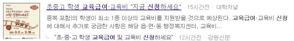 초중고 학생을 위한 교육급여 및 교육비 지원 신청기간이 도래했습니다. 저소득층 가구라면 부담말고 사양말고 아래 설명을 참조해서 신청바랍니다. 되도록 2023년 3월 2일 목요일 ~ 17일 금요일까지 신청하고 교육비 지원 받으세요. 해당기간에 신청한 부모님에 한해서 2023년 3월부터 2024년 2월까지 자녀들의 교육급여를 지원받을 수 있습니다. 본문의 2023년 교육급여 신청 방법을 참고해서 자녀들 학비에 보탬이 되길 바랍니다.