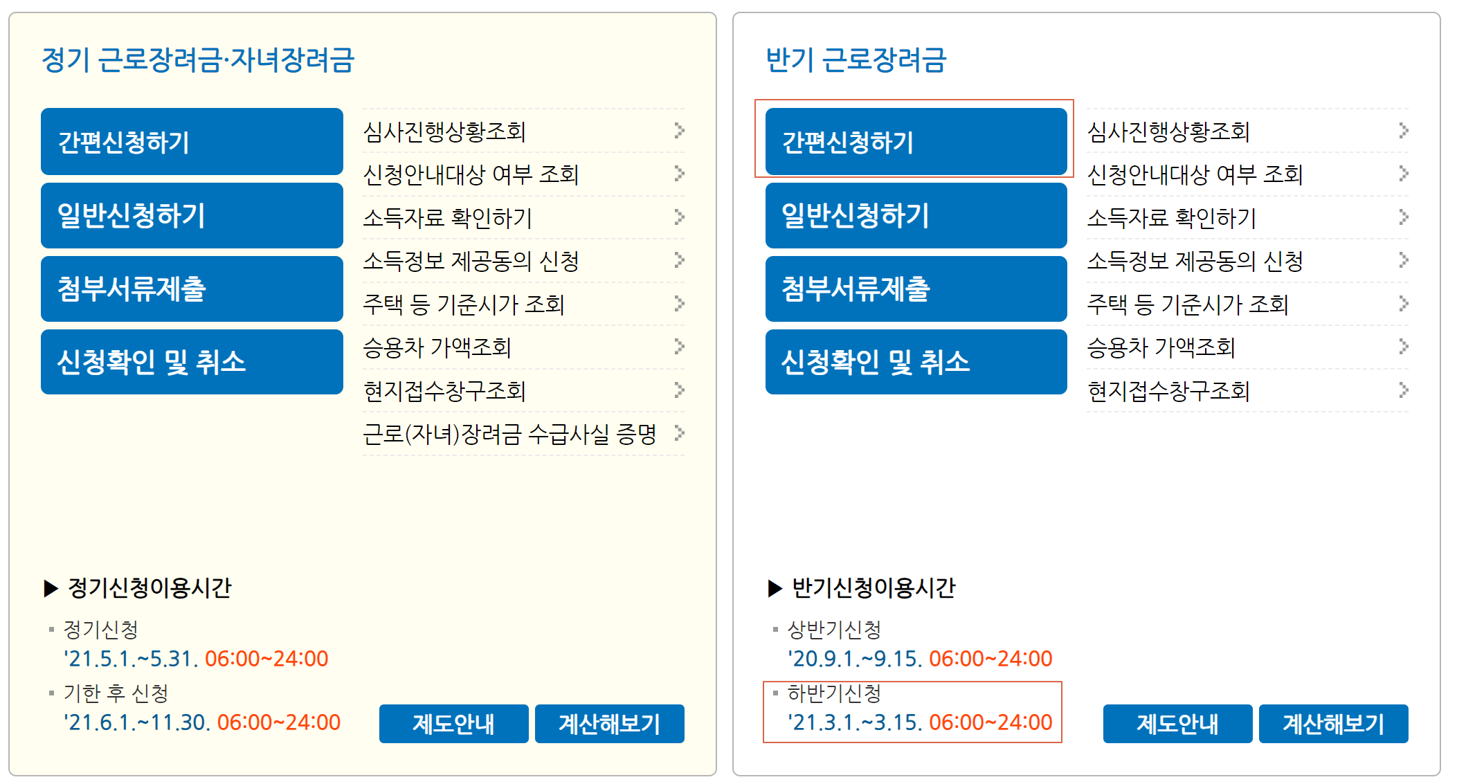 아래에서 근로장려금 모의계산 해보세요