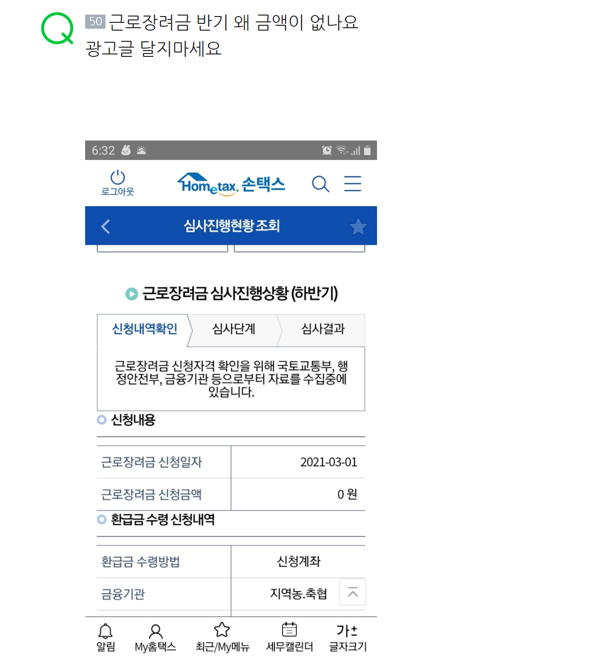 근로 장려금 지급 대상자 확인 꼭 한번이라도 해보길 바래요 누군간 저소득층이 아니어도 보너스 금액을 그냥 타간대요 대기업 다니면서 고연봉에다 수십,수백만원 근로장려금을 눈먼 돈이라