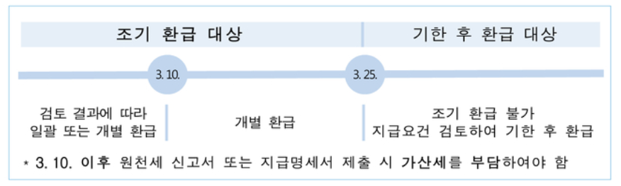 3월 11일 이후로 3월 25일까지 신청하면 환급금 지급요건을 검토한다음 3월 말까지 개별적으로 환급합니다.