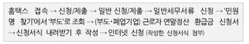 기업이 망해버려서 회사가 받아서 근로자에게 지급하는 방식은 할 수가 없습니다. 이럴때는 국세청 홈택스로 들어가서 다음과 같은 절차를 거쳐서 인터넷 연말정산 환급금 신청을 직접해야 합니다.