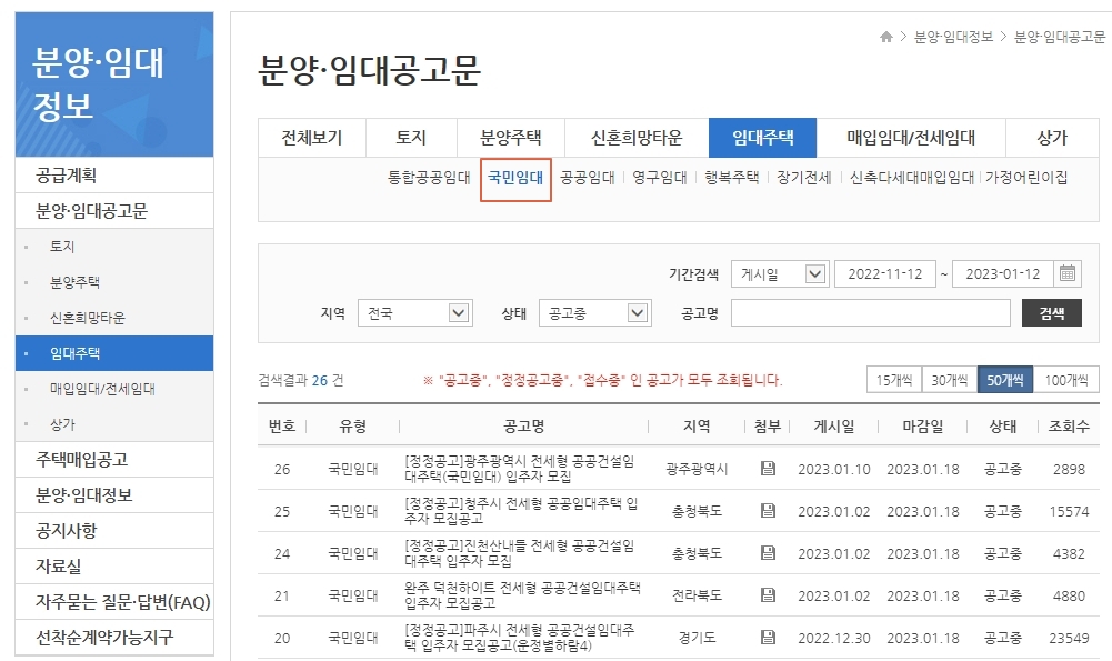 2023년 국민임대주택 청약일정