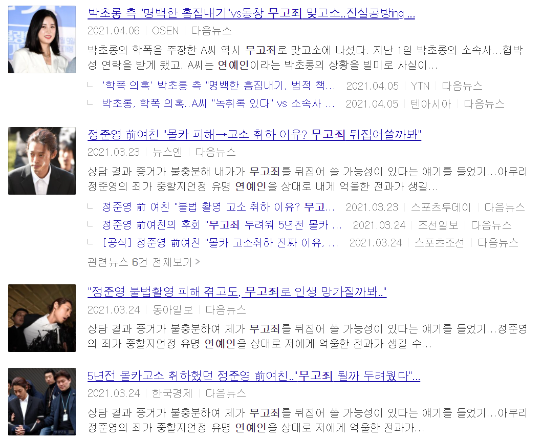 연예인들의 성추행,학폭 등 허위사실 유포나 무고죄 등의 법적 대응을 보는 건 생각보다 먼 이야기가 아닙니다. 바로 윗집과 아랫집의 다툼으로 일어날 수도 있고 잠깐 술집에서 만난 사이에서 벌어지는 사건으로 엮일 수도 있습니다. 무고죄의 공소시효는 10년으로 정해진만큼 늦지않게 대처하는게 본인의 명예를 회복할 수 있는 길입니다.