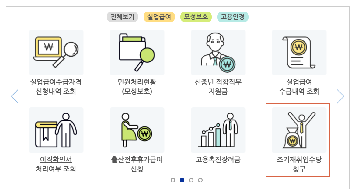이런 조건이 모두 충족된다면 고용센터에 청구할 수 있습니다. 하지만 직접 현장으로 방문하는게 귀찮은 분들은 아랫쪽의 온라인 신청처로 가서 접수해보세요.