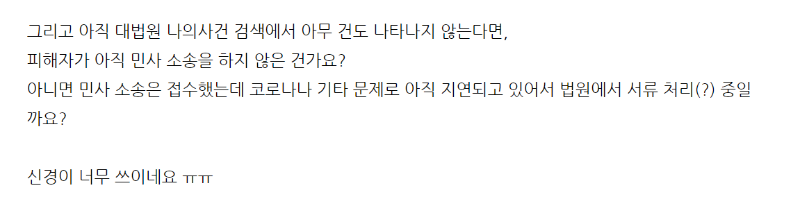 아직까지 대법원 나의사건 검색에서 아무건도 나오지 않는다면 아직 상대방이 소송을 제기하지 않은 건가요?