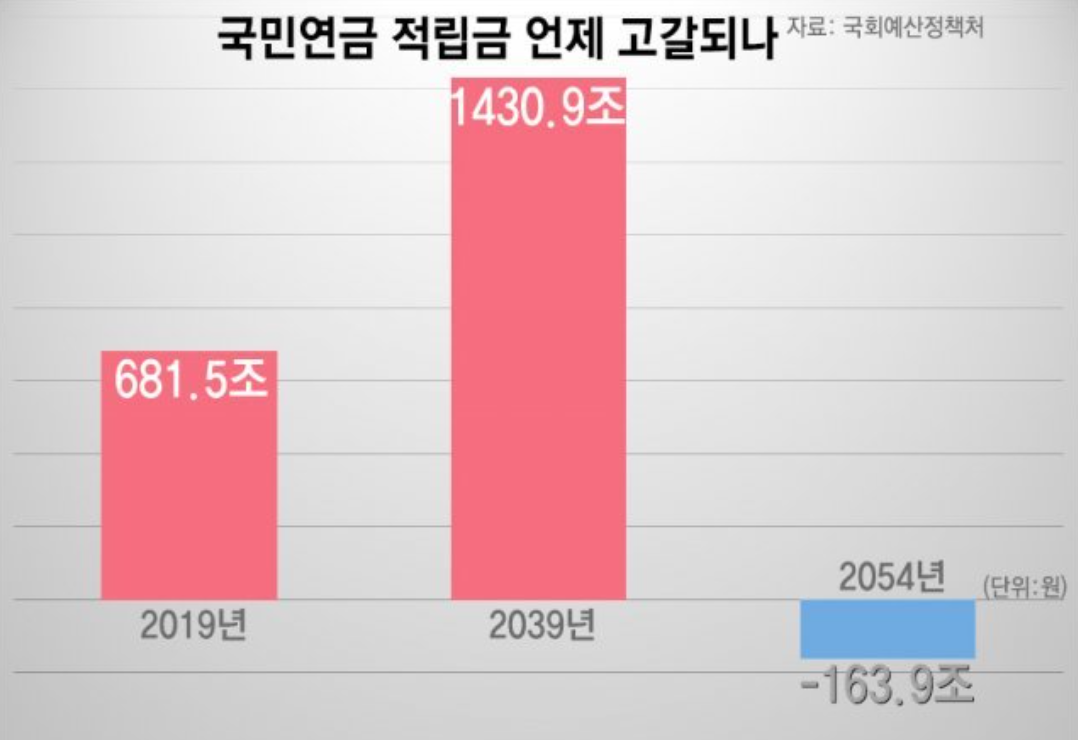우리나라는 납세의 의무를 명시하고 있습니다. 내가 일하는 월급의 일정부분은 나라에서 가져가죠. 이때 노년을 위한 저축성 예금과 같은 명목하에 떼어가는 돈이 바로 연금입니다. 문제는 2054년이면 -163.9조에 달할 정도로 마이너스가 된다는 점입니다.