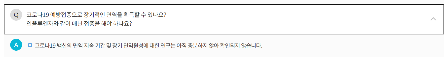 한두번만 접종하게되면 더이상 접종하지 않아도 될까? 하는 물음에는 면역지속기간 및 장기면역원성에 대한 연구가 많지않아 정확하지 않다고 합니다.