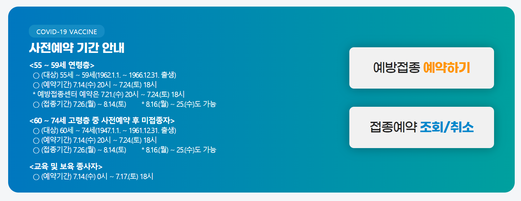 | 교직원 백신 접종 예약 시스템 체크 (0) | 2021.07.14 |