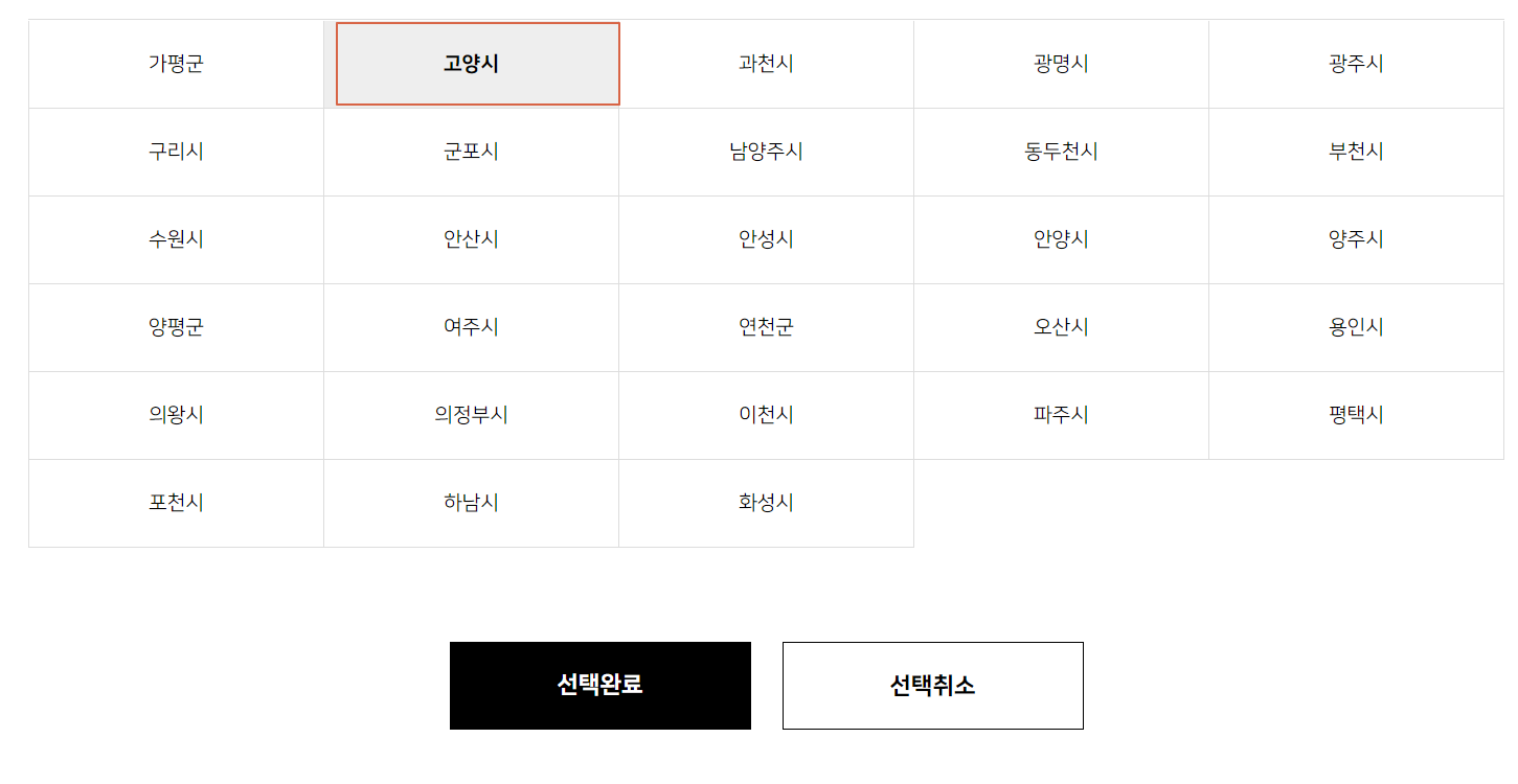 2. 예를 들기위해 '고양시'로 선택하고 진행해 보겠습니다. 자신이 사는 거주지 위주로만 쓸 수 있고 타지역은 사용제한이 걸리게 됩니다. 이는 동네 상권을 활성화하기 위한 3차 재난기본소득 지원 취지이므로 참고하시길 바랍니다.
