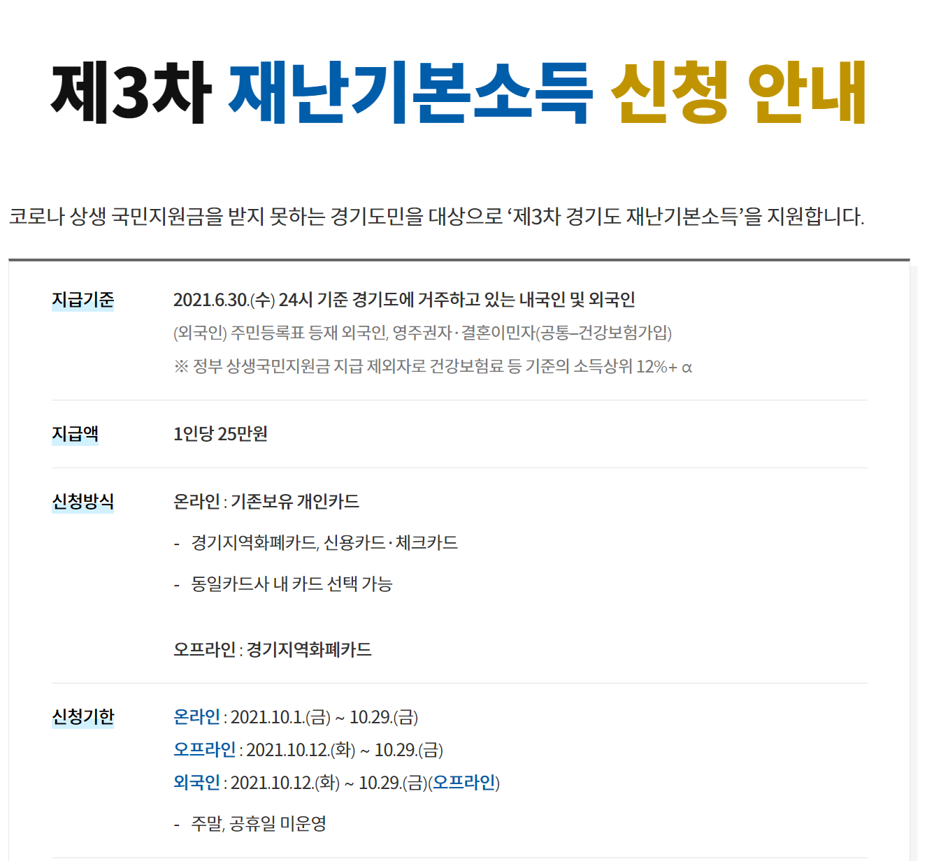2. 지급액 : 1인당 25만원씩 드립니다. 경기도 3차 재난기본소득 지급 대상은 나이랑 상관없습니다.