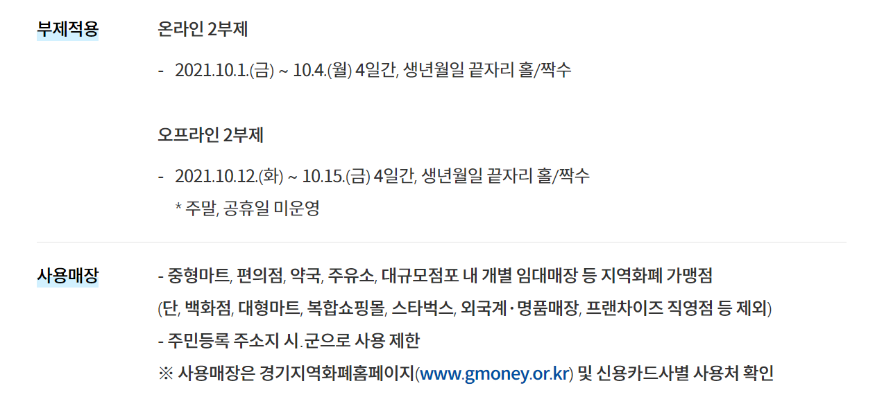 - 오프라인 : 경기지역화폐카드로만 받을 수 있습니다.