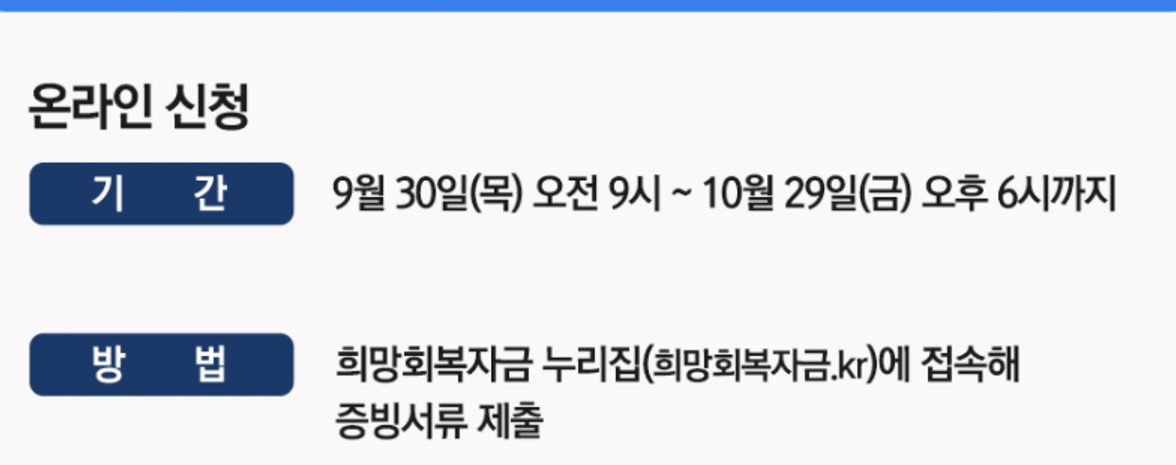 ⭕ 온라인 신청 : 희망회복자금.kr로 접속, 개인정보 활용 등 동의, 휴대폰 , 공동인증서 필요