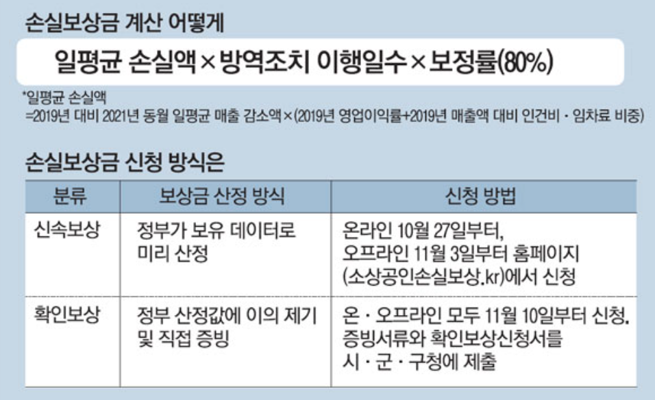 소상공인 손실보상 계산방법