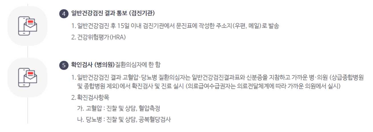 국가에서 시행하는 건강검진 공통 검사항목은 이렇게 구성되어 있습니다. 위 항목은 건강보험공단에서 부담하기 때문에 검사를 받을때 별도의 비용이 발생하지 않습니다. 다만, 기본 검사에서 특이사항이 있거나 추가 검사를 받고 싶은 경우라면 별도의 검사비가 발생하게 됩니다.