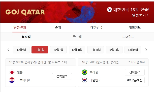 - 중계시간 : 2022년 12월 6일 화요일 새벽 4시