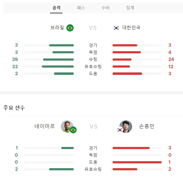 한국 브라질 경기결과
