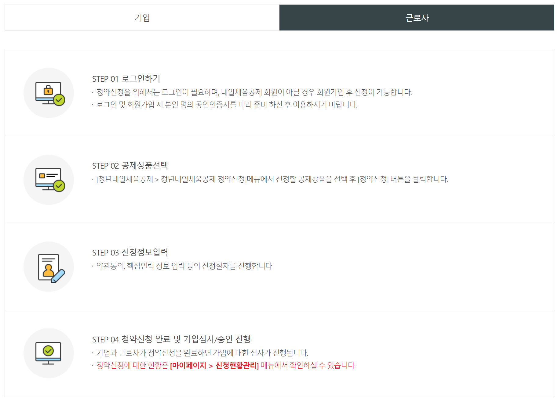 4. 기업과 근로자가 청약신청을 완료하면 심사가 진행됩니다.
